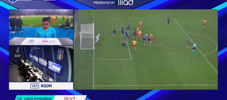 第8分钟,奥利韦拉被皮耶罗蒂踩倒,前者痛苦倒地
